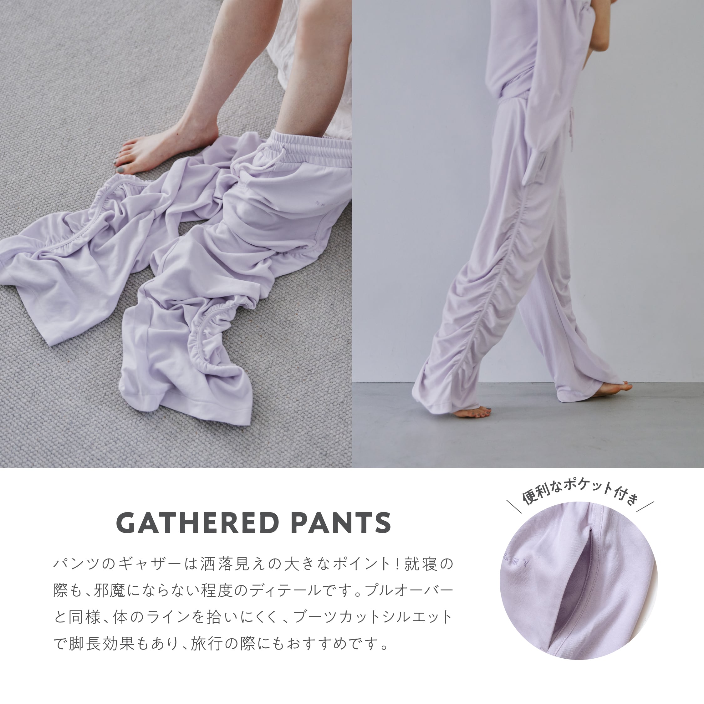 パンツのギャザーは洒落見えの大きなポイント!