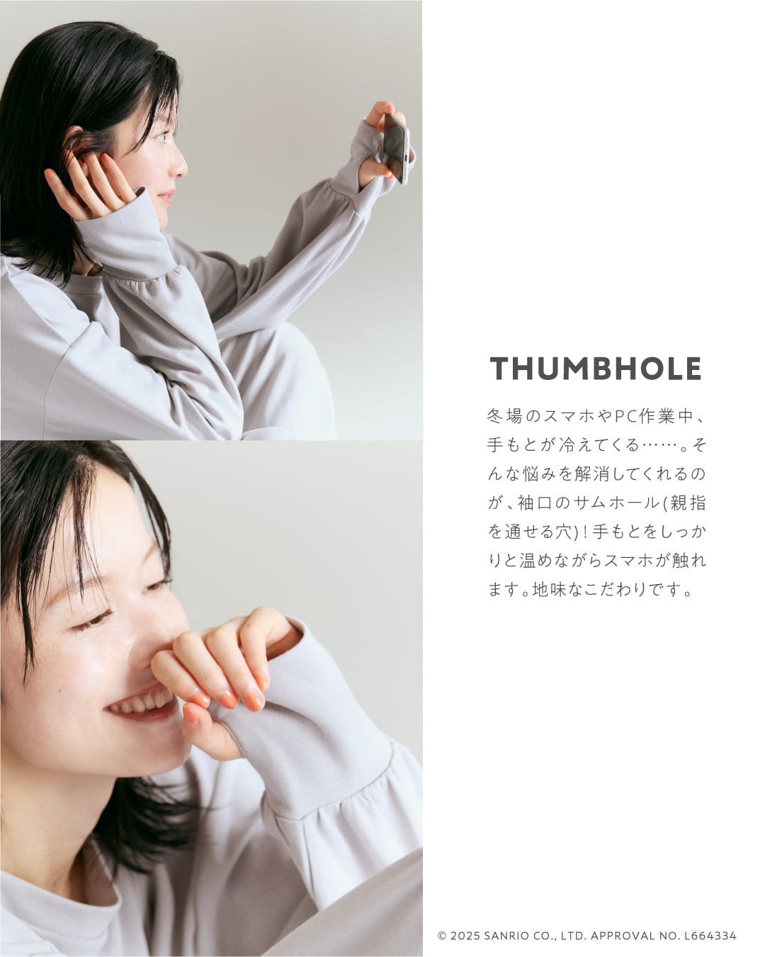 冬場のスマホやPC作業中、手もとが冷えてくる……。そんな悩みを解消してくれるのが、袖口のサムホール(親指を通せる穴)!手もとをしっかりと温めながらスマホが触れます。